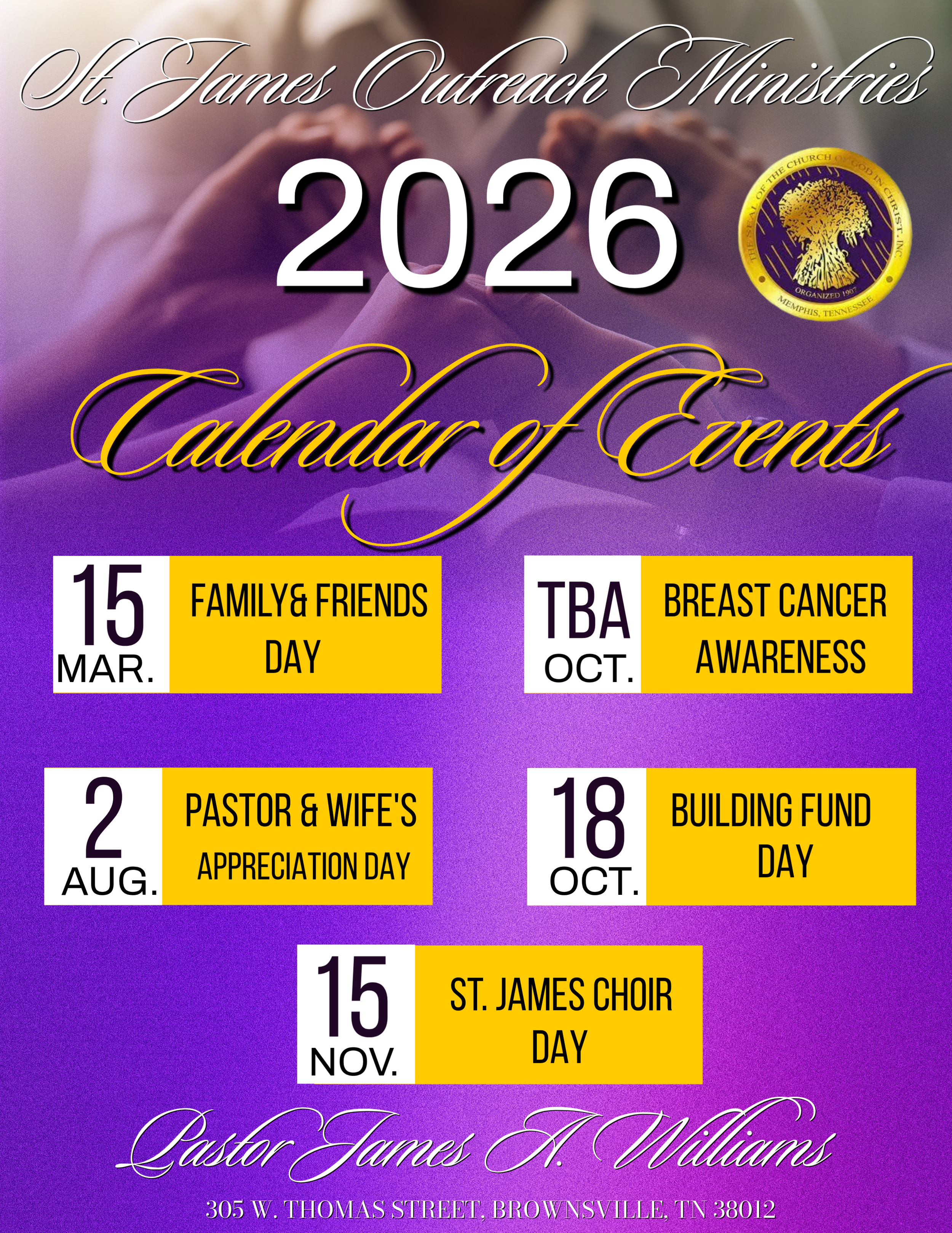 Pastor Williams and Lady Williams invite each of you to join us for our service of events.
